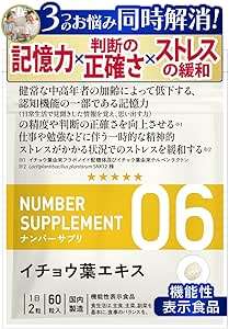 記憶力の維持サポートに、機能性関与成分としてイチョウ葉由来の「ホラボノイド配糖体」と「テルペンラクトン」を配合!認知昨日の一部である記憶力サポートにおすすめです。ニュージーランド産の高品質なイチョウ派を使用しており、安全面・品質面でも安心な商品です。