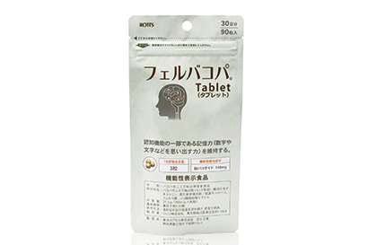 フェルバコパには、機能性関与成分である「総バコサイド」という成分が3粒あたり140mg含まれており、認知機能の一部である記憶力の維持サポートが期待されます。総バコサイドとは、バコパモニエラに含まれるサポニンであり、バコパモニエラの有効成分です。また、フェルバコパにはフェルラ酸も配合。記憶力維持についての研究実証済みなので、信頼性もあるサプリメントです。