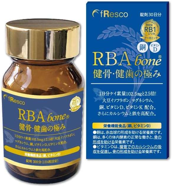 ケイ素濃度第1位を誇る特許技術原料RB1シリカ・オーガニックを使用したRBA Bone~健骨・健歯の極み~が第2位です。稲由来のRB1シリカ・オーガニックのケイ素含有量は41,000mg/100gで90%以上の純度となります!RB1シリカは、体に優しい特許技術独自製法で薬品一切不使用の国産稲100%由来。RBA Boneは、稲由来のケイ素が1日当たり102.5mgも摂取でき、一般量の2.5倍も入っています。