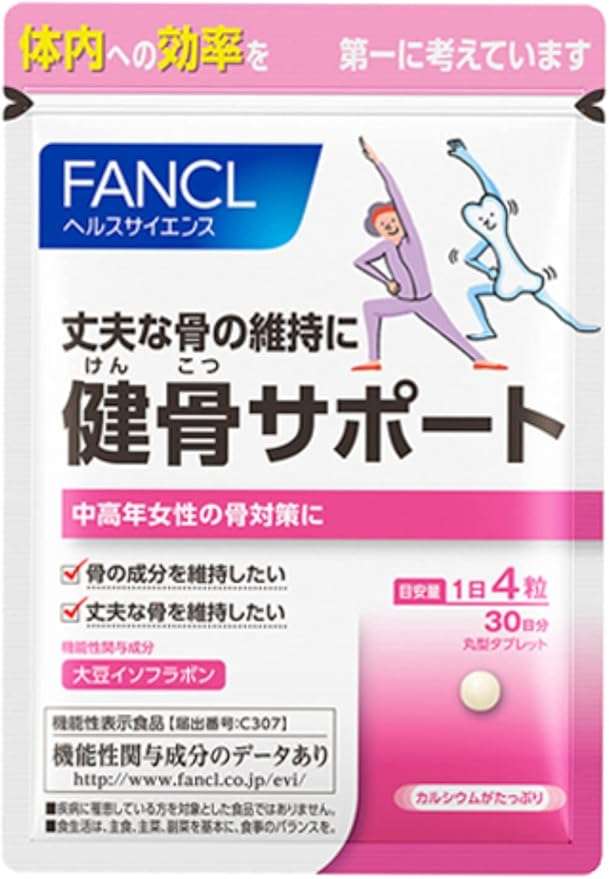 体内への効率を第一に考えられた健骨サポート!カルシウム・ビタミンDの他に大豆イソフラボンやコラーゲンペプチドが含まれた、中高年女性の骨の健康維持にオススメのサプリメントです。
