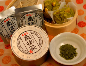 色鮮やかな桑の緑を添加物を一切使用せずに抹茶状のパウダーにしました。独自の乾燥方式で青臭さを除去。お茶としてはもちろん、調味料としても優秀です。召し上がり方はさまざま。天ぷらの衣や茶椀蒸しに混ぜると料理に彩りが増しますし、シフォンケーキやホットケーキに混ぜるのもオススメ。どんな料理でも混ぜて使えるのでとても便利な商品です。桑100%の「桑抹茶」、青臭さがないので様々な料理に使えます。