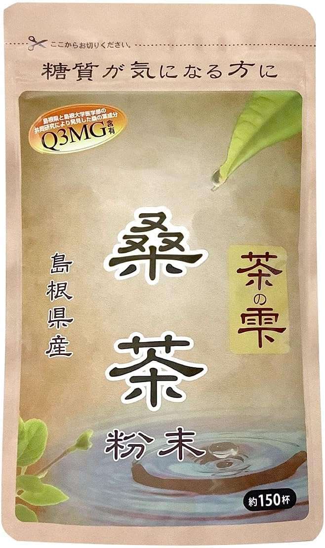 島根大学医学部と島根県産業技術センターの共同研究で明らかになった桑の葉の新有用成分「Q3MG」を多く含有する桜江町産の特別栽培桑の葉使用。