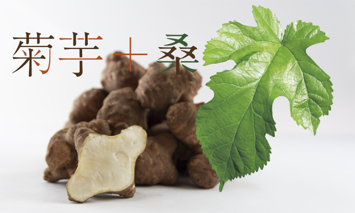 島根県桜江町で有機栽培した菊芋と桑の葉を、飲みやすいようにブレンド。手軽に飲めるようティーバッグに入れました。機能性だけでなく美味しさにもこだわった自信作です。菊芋には、現代人に不足しがちな水溶性食物繊維が豊富に含まれています。その含有率はなんと約60%と、野菜の中でもトップクラスの多さなのです。菊芋に含まれる食物繊維は水溶性食物繊維(多糖類)の一種で、糖類の仲間ではあるものの、人間は分解酵素を持っていないため、菊芋を摂取してもほとんど吸収されずに体外に排出されてしまうのです。摂取した水溶性食物繊維は、腸で水分を吸収するとゲル化し、一緒に摂取した糖分や塩分を体外に排出する働きを持っています。さらに、イヌリンは腸内にはいると、体調管理を助ける善玉菌のエサに変化!!結果、腸内環境の正常化に働きかけてくれるんです。桑の葉に含まれる糖質コントロール成分は、小腸に運ばれてきた糖の吸収を調整します。原材料の菊芋と桑の葉は、100%島根県桜江町で農薬を使わず有機栽培したものだけを使用しています。生産者である私たち自身が、安心して飲める原材料だけでつくりました。