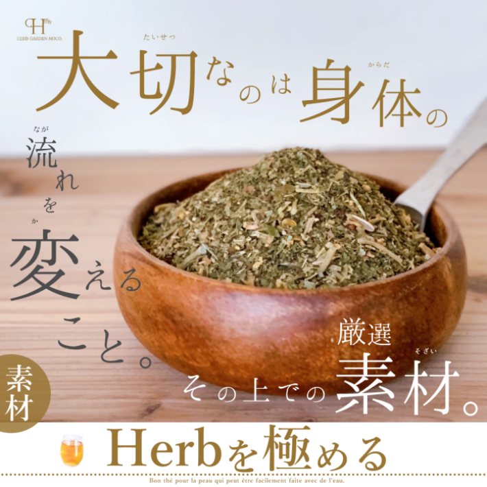デトックス(体内浄化)やダイエットに効果があると言われるハーブには、香りがきつく飲みにくいものが多くあります。ハーブガーデンmocoのオリジナルブレンド”毎日デトックスティー”『ひめ桑茶』は、ハーブの効能を生かしつつ美味しさ・飲みやすさを追求して出来上がったものです。デトックス系ハーブ3種類(ダンデリオン、ジュニパーベリー、リンデンウッド)と味を支え体の流れを整えるハーブ6種類(マルベリー(桑の葉)、ギムネマ、フェンネル、リンデンフラワー、エルダーフラワー)をブレンド。マルベリー(国産桑の葉)が香ばしく、番茶のようなお味で、食事に合うハーブティーです。2度焙煎に加え深入り焙煎したことで、茶葉ひとつひとつに熱が通りより【のど越しで感じる桑の葉の芳香】が香ばしくなりました。「機械ではなく人の手で」こだわりの焙煎でクセがほとんどなくまろやかな味わいに。1つ1つの工程を大事に作り上げた優しいお茶です。