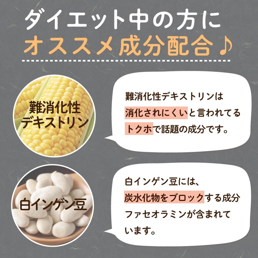 【詳細】●難消化性デキストリン配合、●白インゲン豆エキス配合、●「Q3MG」を多く含有