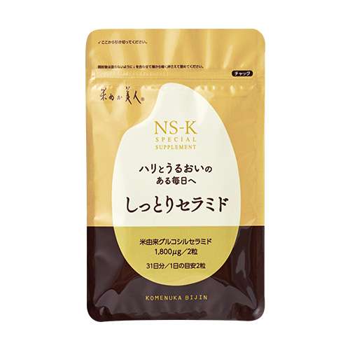 米由来のグルコシルセラミドを配合したサプリメントで、顔や体の肌を乾燥しにくくするのを助けてくれます。セラミドの他にもコラーゲンペプチドやケイ素、ビタミンなどが含まれています。