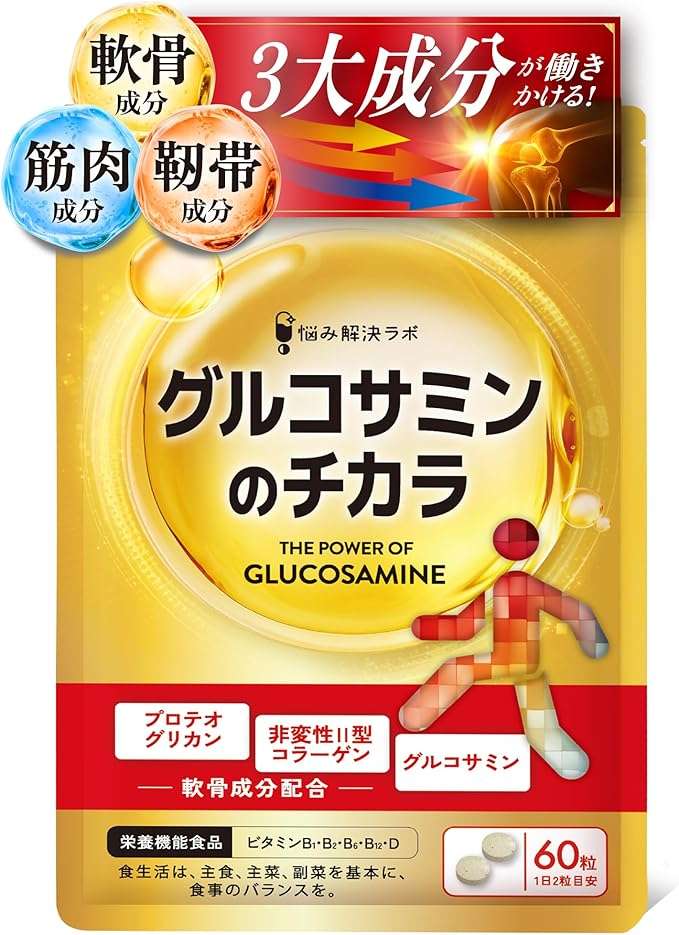 コラーゲン等の膝関節にゆかりのある成分はもちろん、加えて一般的に骨によい作用があるとされているケイ素やカルシウム、銅、ビタミン類も配合されています。