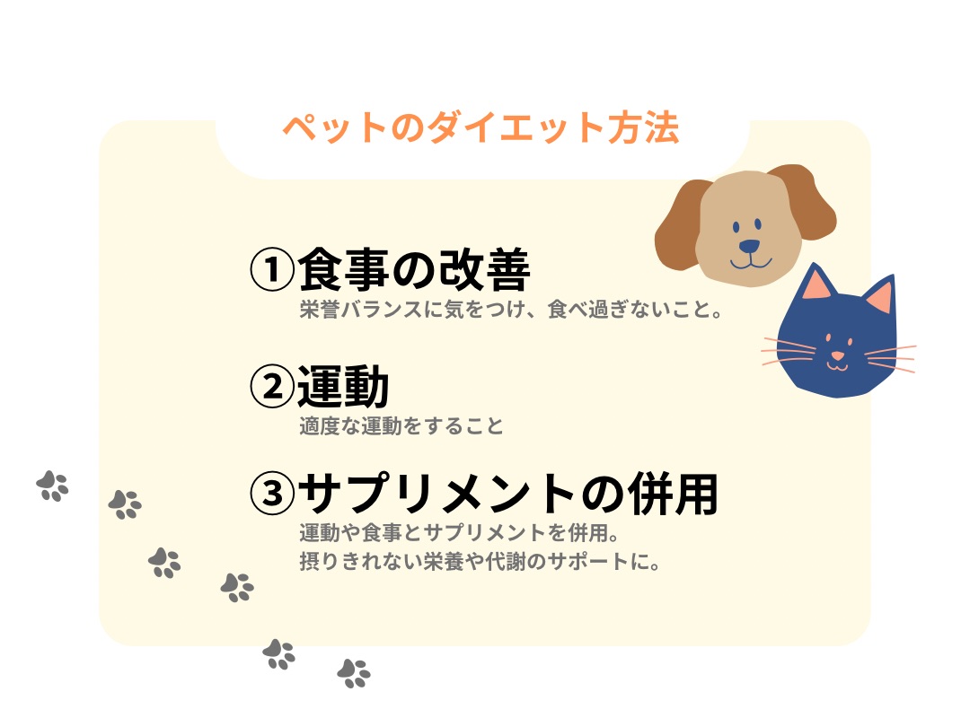 では、ペットのダイエット方法には何があるのでしょうか?