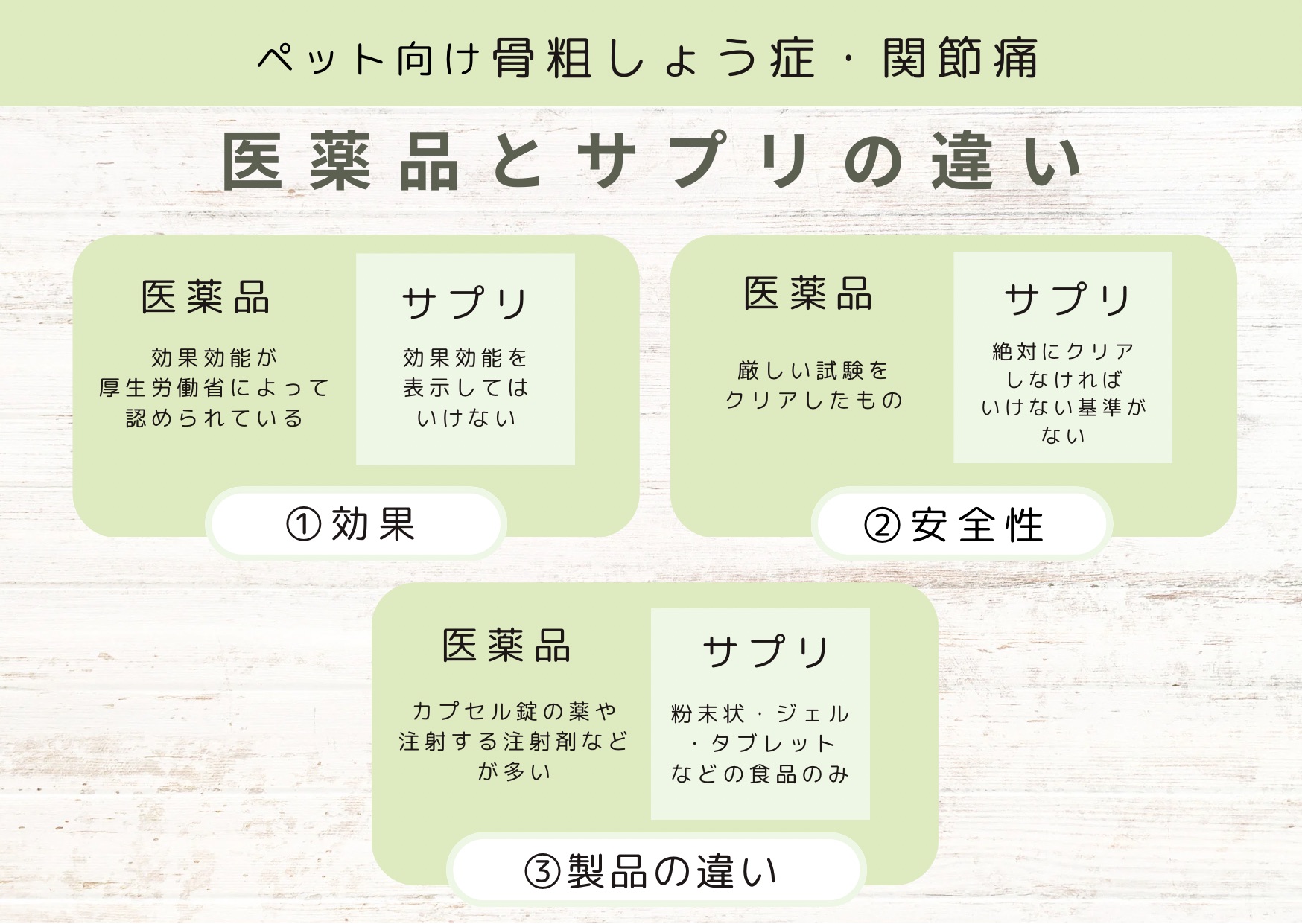 【ペットの骨粗しょう症・関節痛・足腰・骨ケア】医薬品とサプリの違いとは?