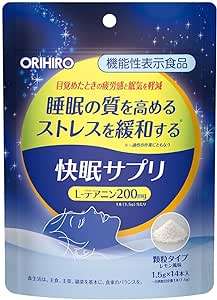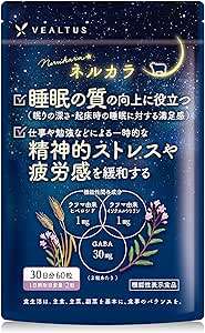| 機能性表示食品 | ◎機能性表示食品 | 疲労感の軽減に関する成分 | ◎機能性関与成分として有 | ストレスの軽減に関する成分 | ◎機能性関与成分として有 | 眠りの深化に関する成分 | ◎機能性関与成分として有 | 眠気の軽減に関する成分 | △有 | 中途覚醒に関する成分 | ✕無 | 飲みやすさ,形状 | ◎錠剤 | 1日あたりのコスト | △75円以上120円未満 |