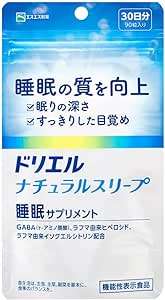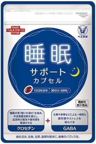 | 機能性表示食品 | ✕一般食品 | 疲労感の軽減に関する成分 | △有 | ストレスの軽減に関する成分 | △有 | 眠りの深化に関する成分 | △有 | 眠気の軽減に関する成分 | △有 | 中途覚醒に関する成分 | ✕無 | 飲みやすさ,形状 | ◎錠剤 | 1日あたりのコスト | ◎75円未満 |